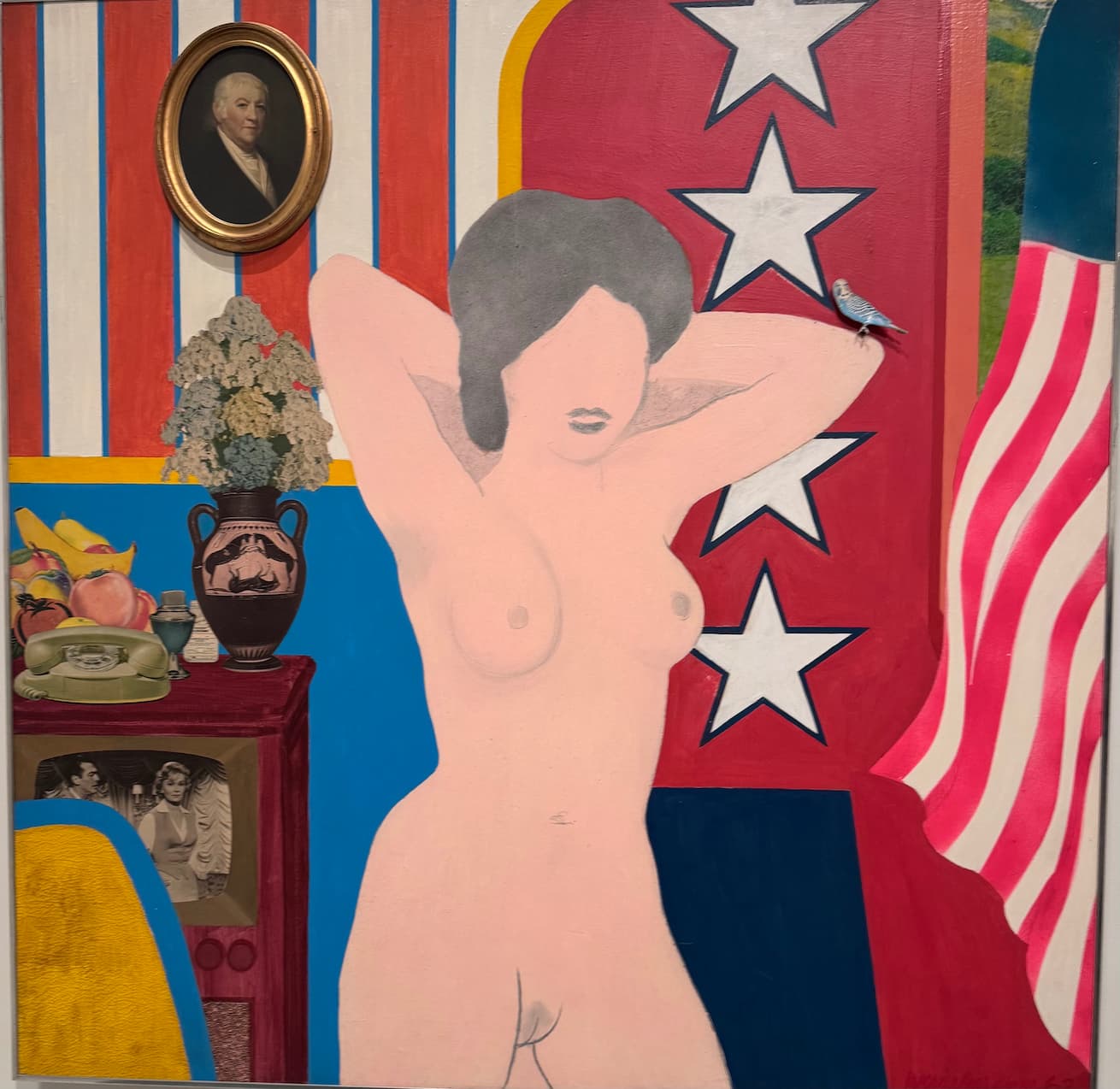 Tom Wesselmann, Great American Nude #34, 1962, (Mixed media, collage, and assemblage, on wood, including a mechanical bird)