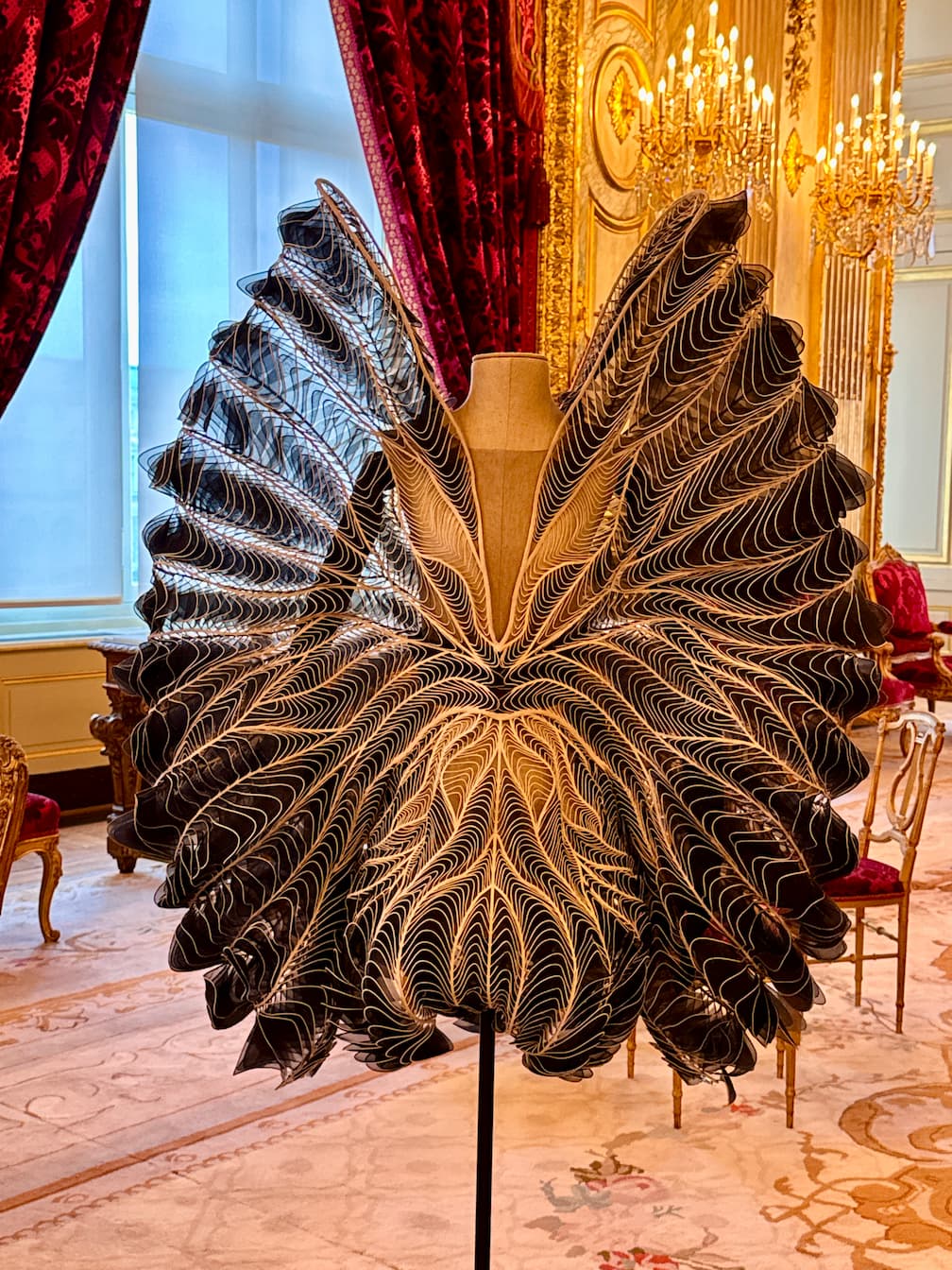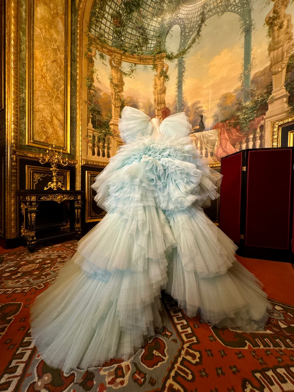 The magic of this exhibition also lies in the scenography entrusted to Nathalie Crinière, a virtuoso of detail. Having already enhanced the Galerie Dior and the exhibitions for Elsa Schiaparelli and Iris van Herpen, here she sublimates the interaction between fashion and art with an immersive staging in which each piece finds its own light.