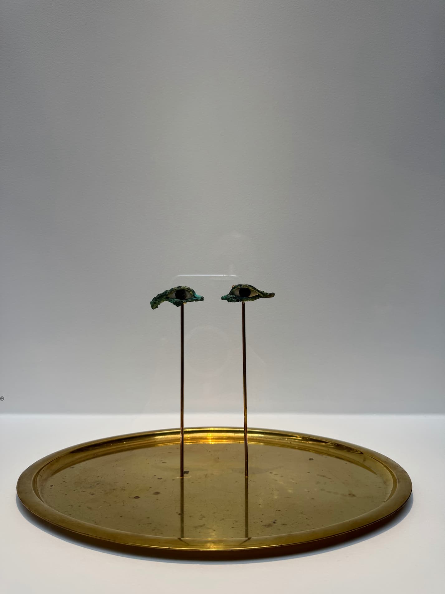 Pair of eyes from sarcophagus in bronze and alabaster, from a sarcophagus mark (Egypt, Saite or Late Period,663-525 BCE) Brass plate, brass.
