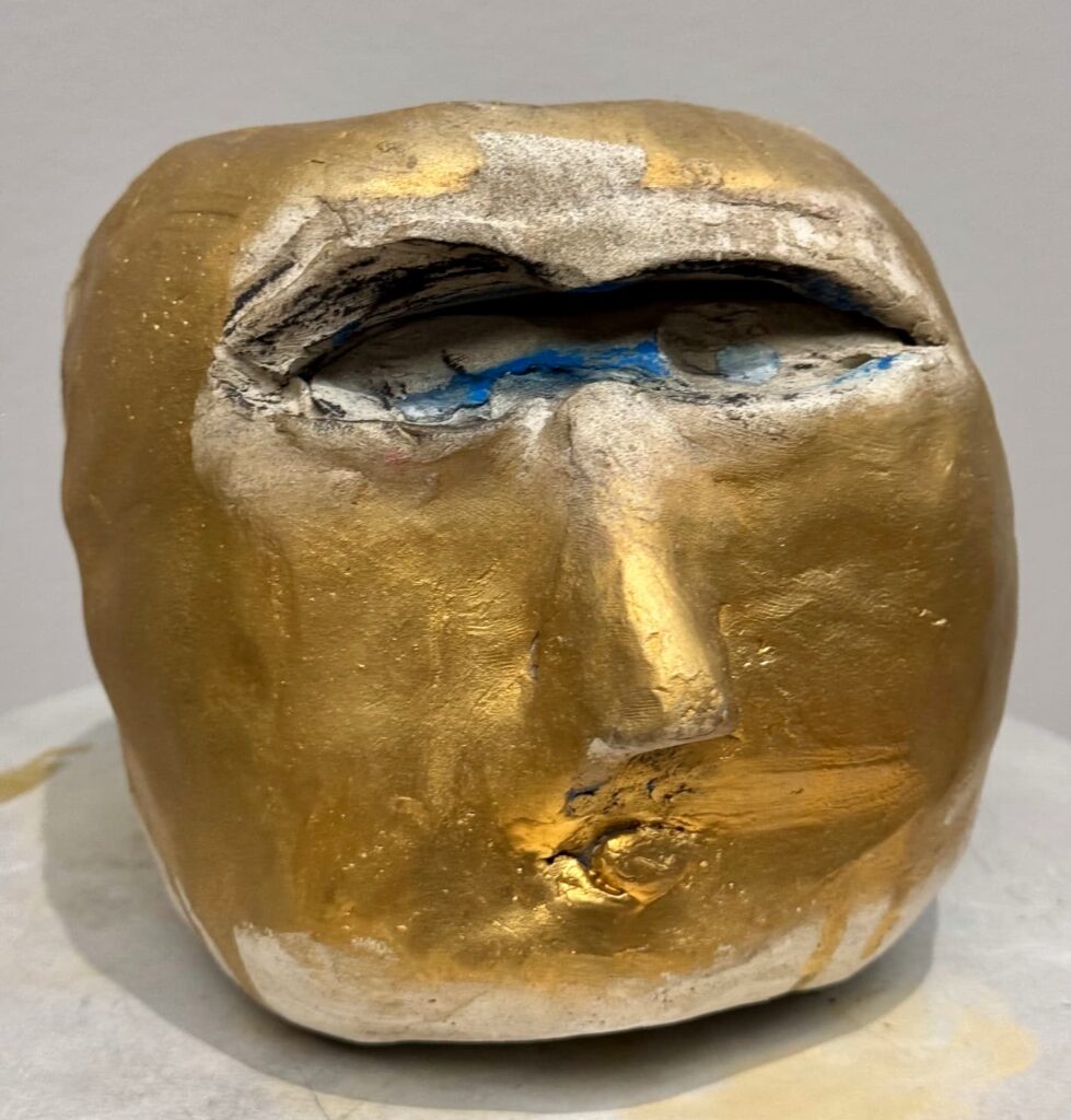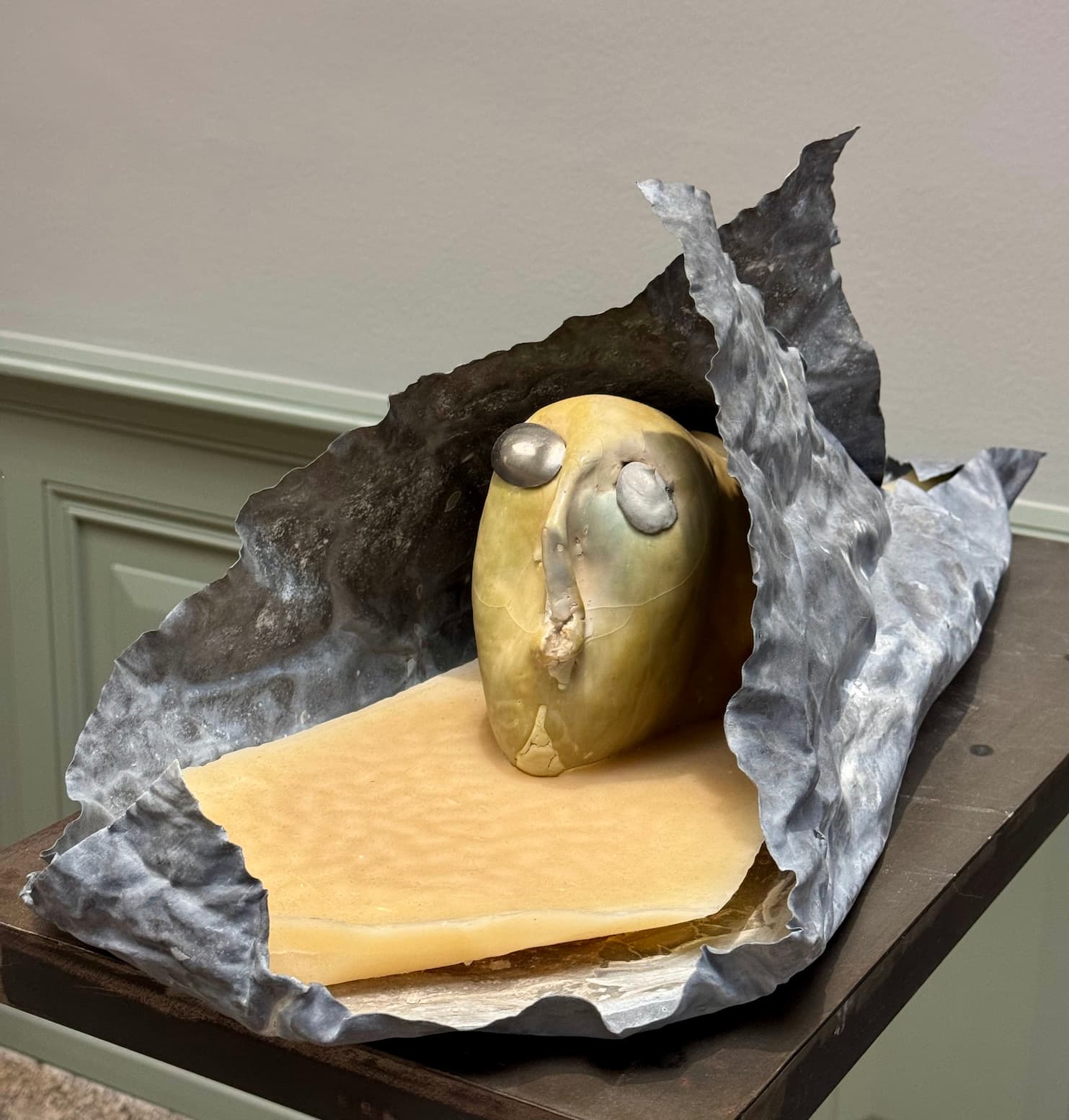 Marisa Merz, Untitled, 1988, Raw Clay, wax, lead, on a metal base. Merz Collection.