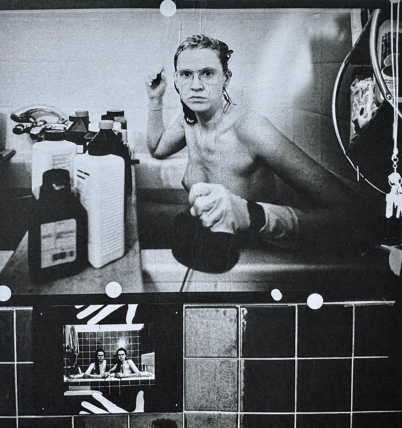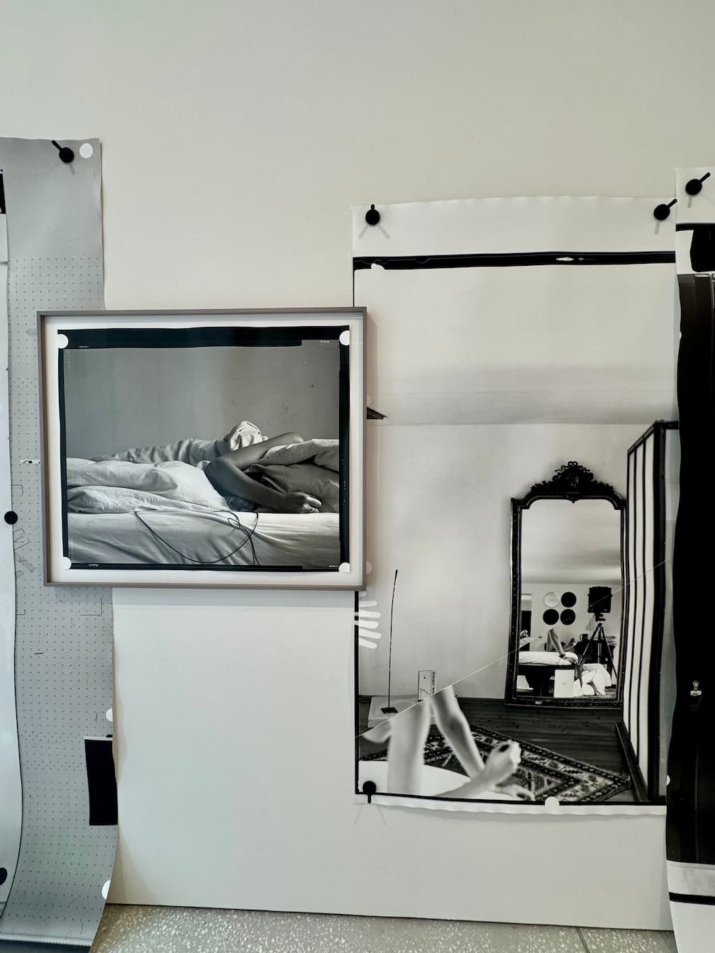 When working on her large-format photos, she uses magnets to hold the paper aganist the metal wall in the dark-room. This surface frequently appears in her images.