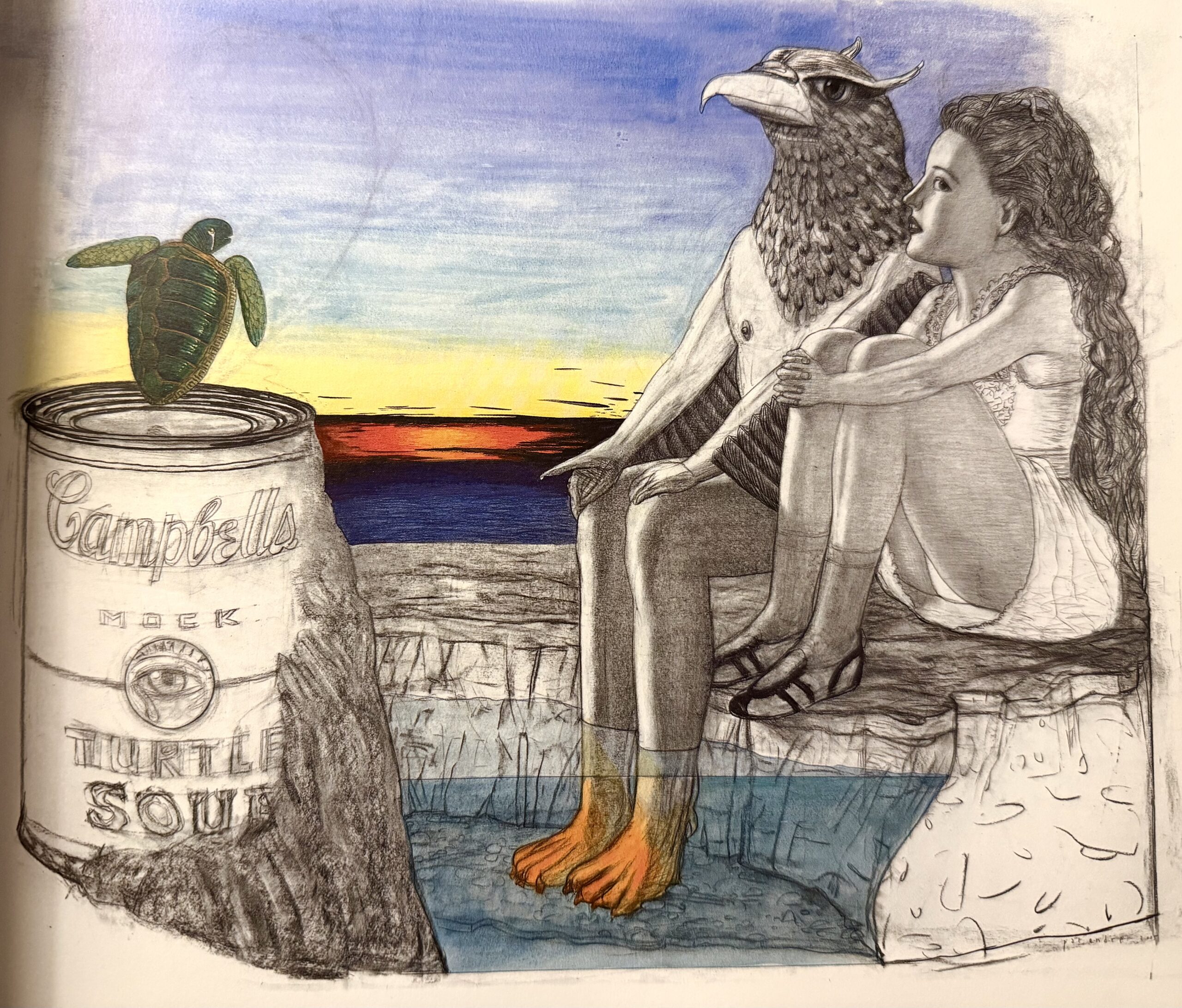 How could anyone not be a huge fan of Pat Andrea after discovering his masterful drawings for the Alice in Wonderland album ? Andrea is a magical realist and the master of neo figurative painting. Alice’s Adventures in Wonderland and Through the Looking- Glass and What Alice Found There by Lewis Carroll is the world’s most illustrated book. The character of Alice has been depicted thousands of times by different artists. Andrea’s portrayal of Alice is unique in that he presents her as a time traveller, ensuring her immortality!