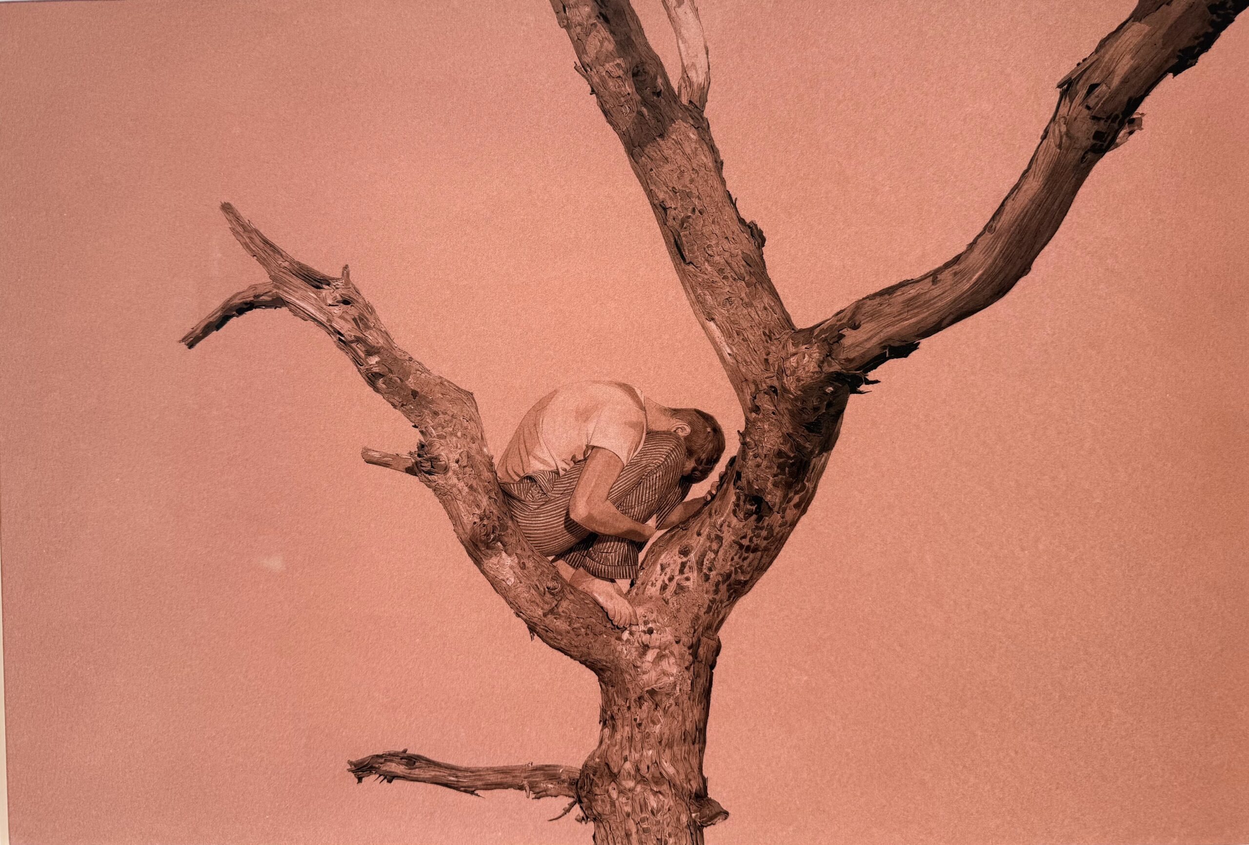 In his drawings and sculptures in the exhibition On the Branch , he depicts his intention to protect his children from all the absurdities of the world.