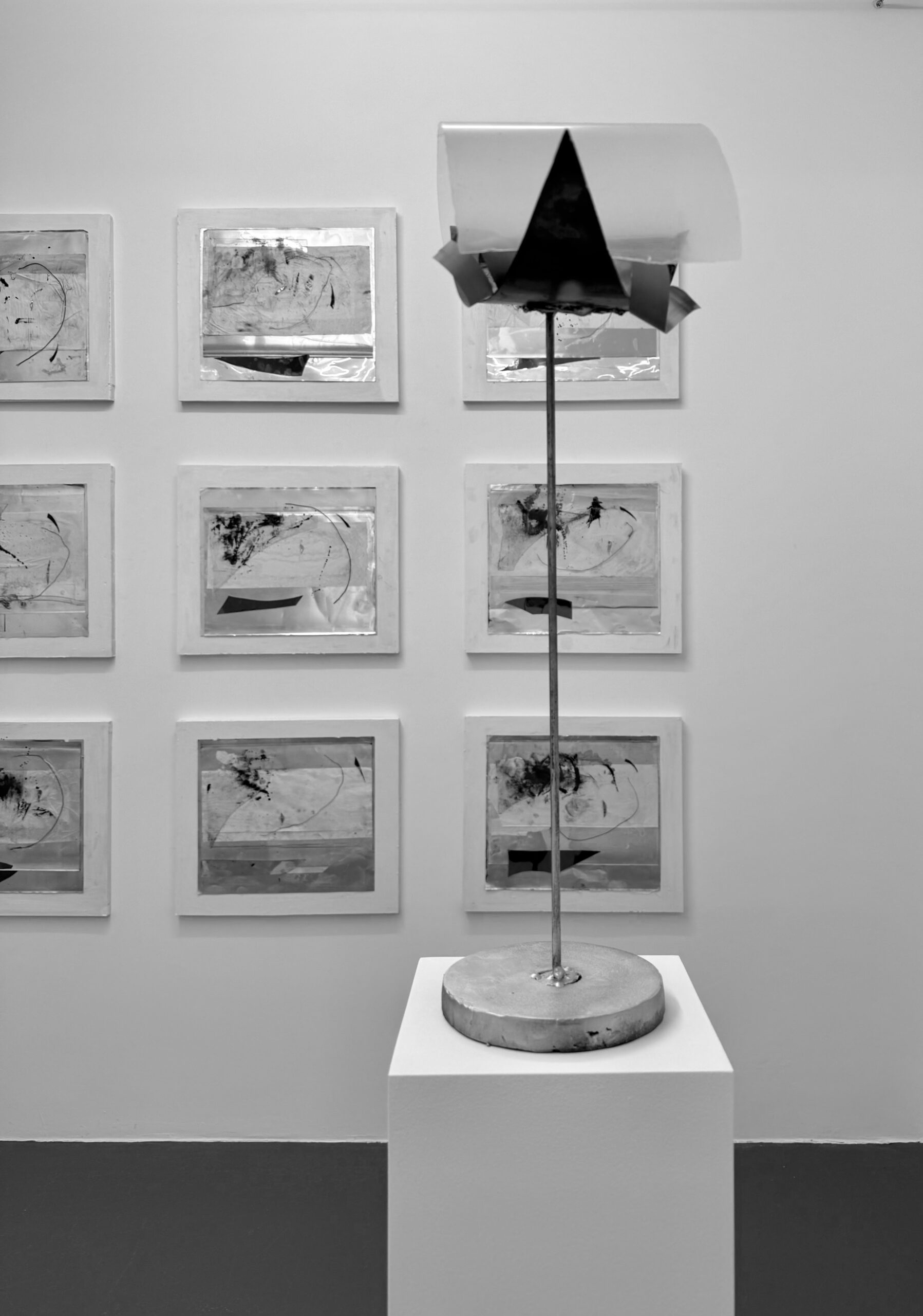 RUDOLF POLANSZKY is a key figure in the Vienna art scene. Polanszky was born in Vienne, where he grew up in the 1960s in the wake of the Viennese Actionists. In his early work, Polanszky reacted against this movement by performing his own ironic actions. The 1990s marked an artistic turning point for Polanszky. During this period, he began creating canvas-mounted and freestanding assemblages by combining salvaged industrial materials such as aluminum, mirrored foil, resin, and wire. His process is known as ‘ad hoc synthesis’ demonstrates his interest in deliberate artistic action with random chance to create a new context.