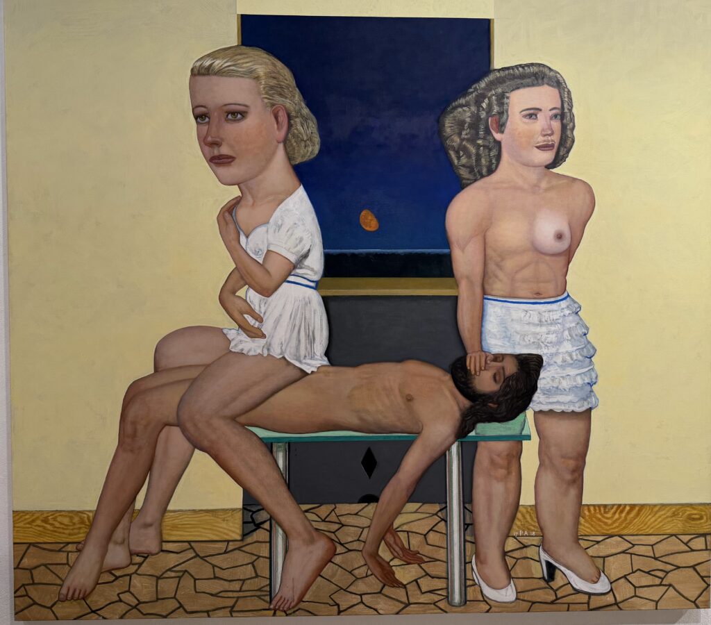 Andrea is a master at creating enigmatic theatrical scenes charged with psychological and erotic ambiguity.He is a magical realist, his art exists between reality and nightmare.Pat Andrea’s Alice in Wonderland series is a prime example of his masterful creation of his magical realism. He transforms a cultural myth into an intimate, subjective theatre populated by figures that are simultaneously familiar and alien, innocent and dangerous.Andrea, like Francis Bacon, examines the physicality and vulnerability of the human form. He distorts human body as means to express internal turmoil and existential tension.