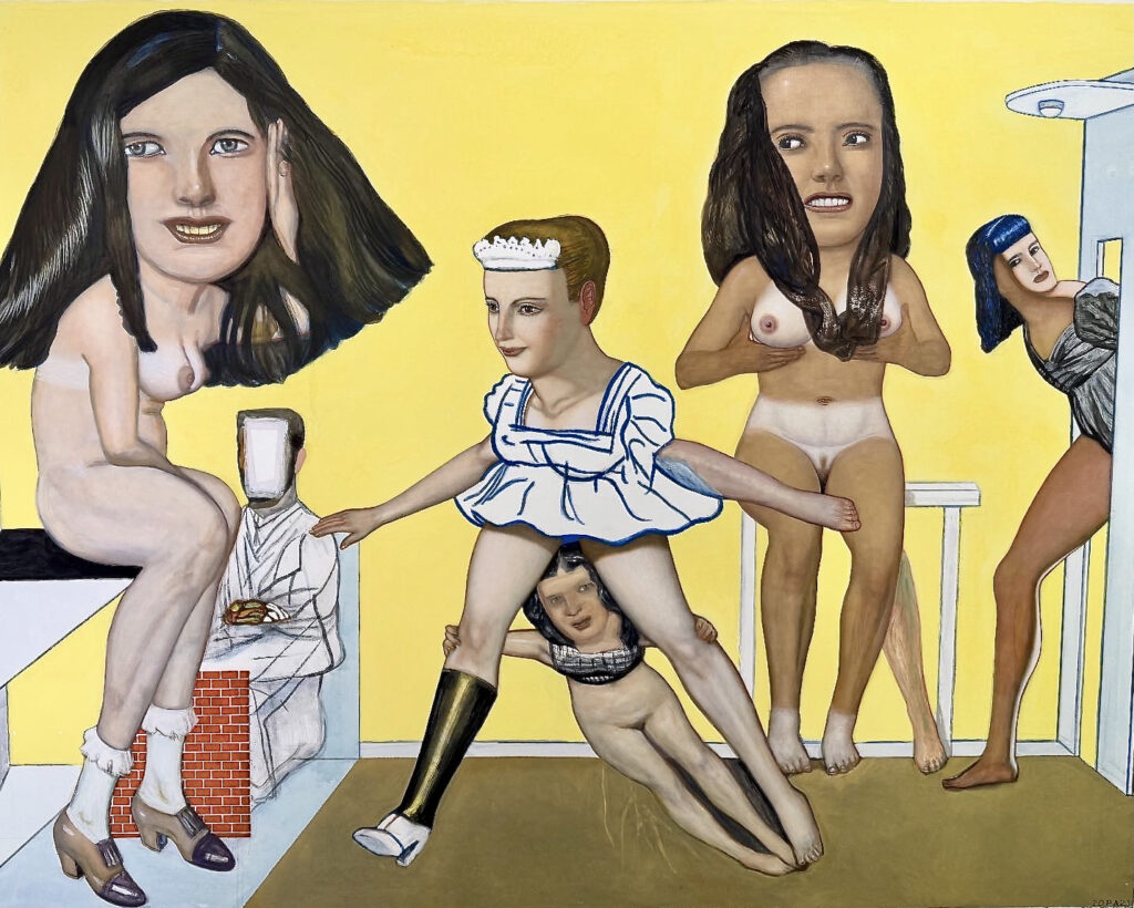 The female figure is central in Pat Andrea’s art that carries deep symbolic meaning. His Female depictions are not only a subject but the core of his story telling which represents a complex mixture of desire, fragility, strength, and danger. In his paintings, women often appear nude, contorted, or suspended in ambiguous spaces, expressing power and vulnerability. The female protagonists in Andrea’s work embody love, violence, freedom and fear. Andrea’s portrayal of women reflects the inner contradictions of the contemporary female figure.