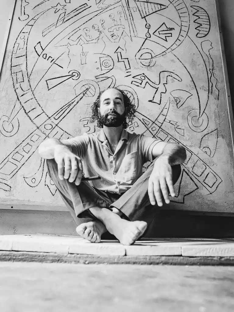 Julien Peltier’s work today is deeply rooted in material research drawn directly from nature. His approach is very intuitive rather than scientific, guided by sensation, encounter, and trust. He collects earth, Plants, ashes, and minerals from specific places, then patiently transforms them into pigments. Each color carries the memory of its origin- not only visually, but energetically. For him, matter is not inert: it is alive, charged with history and vibration. Painting thus becomes and act of translation, a way of allowing nature to speak through color and light.