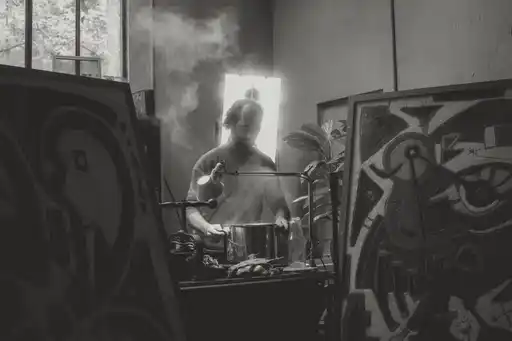 Julien Peltier’s artistic journey begins long before the studio, in a landscape shaped by family, memory, and a quiet attention to the natural world. Born and raised in France, he grew up in very close connection with his grandparents, within an environment where manual skills, patience, and respect for nature were part of everyday life. These early bonds were not only emotional, but formative; they thought him how to observe, how to wait, and how to understand the value of things that take time to reveal themselves.
