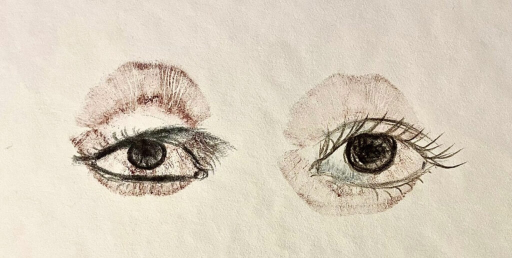 The “kiss” of the title becomes ambiguous: is it an act of care, or a confrontation with the gaze itself?